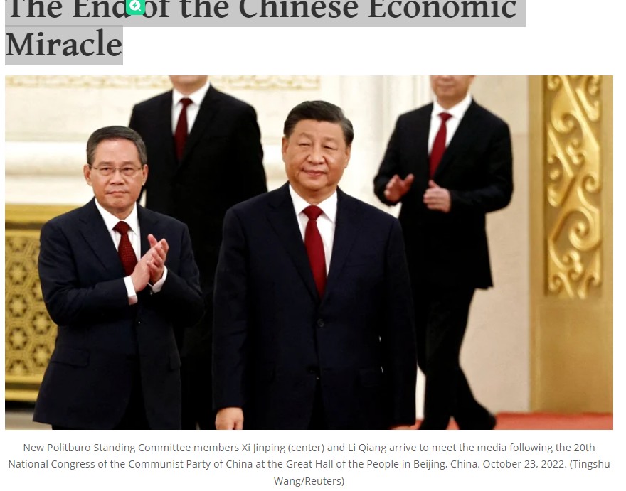 https://www.nationalreview.com/2022/11/the-end-of-the-chinese-economic-miracle/ Xi’s tightening his stranglehold on the CCP is cause for concern. China is no stranger to one-man rule leading to economic misfortune. Anyone doubting this needs only think back to the disastrous economic consequences of Chairman Mao’s Great Leap Forward and subsequent Cultural Revolution. 习近平收紧对中共的控制令人担忧。我们所有意见在您的收件箱NR日报每天下午直接送到您那里。 不收任何费用。中国对于导致经济不幸的”一人统治”并不陌生。 任何对此持怀疑态度的人都只需回顾一下毛主席的大跃进和随后的文化大革命所带来的灾难性经济后果。 Opinion :…